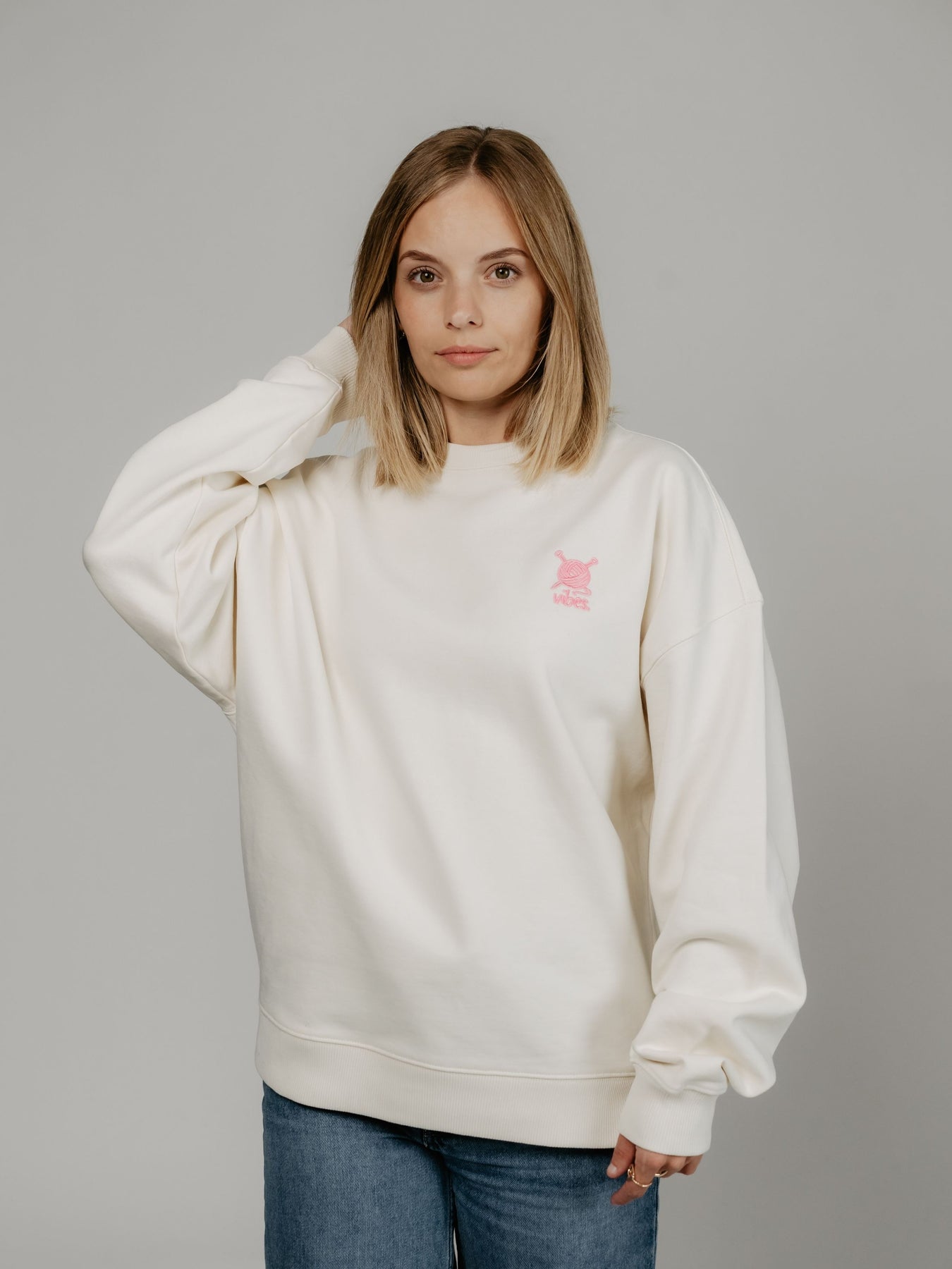 Alle Sweater und Hoodies sind bewusst im Oversize-Fit gefertigt – mit leicht verkürzter Länge und dichter Stoffstruktur.