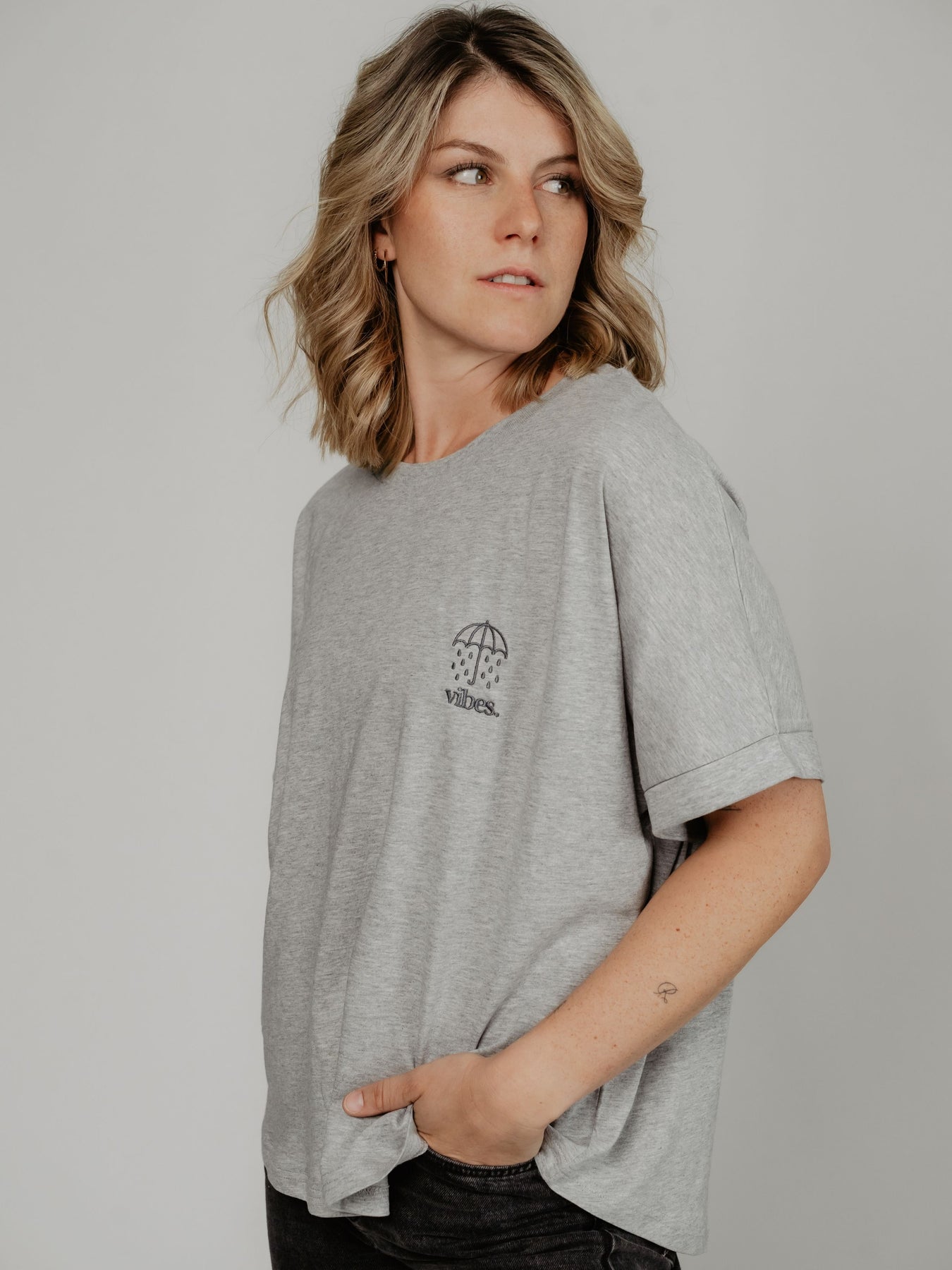 Für klare Tage und ruhige Gedanken. Das locker geschnittene Shirt aus 100 % gekämmter, ringgesponnener Bio-Baumwolle fällt weich und trägt sich angenehm leicht. Der Oversize Fit sorgt für lässigen Komfort, während die feine Stickerei dezente Akzente setzt. Rain Vibes steht für Achtsamkeit, Gelassenheit und den Moment, in dem alles einfach still wird.